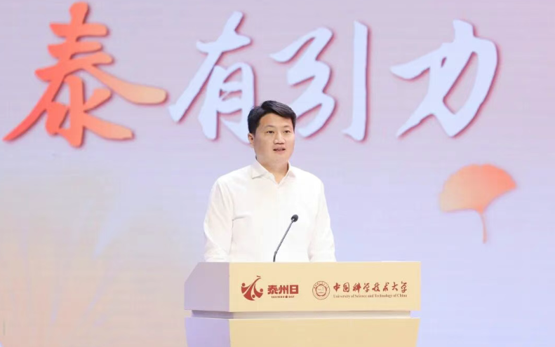 姜冬冬在致辞中代表泰州市委、市政府对中国科大给予的大力支持表示衷心感谢。在简要介绍泰州经济社会发展情况后,他说,当前泰州正聚焦打造长三角具有重要影响力的先进制造业基地,致力构建以“大海新晨”为标志的现代化产业体系,加快建设产业科创强市。中国科大是肩负国家使命、闪耀科学光芒的顶尖学府,被誉为“科学家的摇篮”。从长三角最年轻的设区市——泰州,来到C9联盟中最年轻的主角——中国科大,我们倍感自豪、满怀感动,十分期待与大家携手共创幸福、共享幸福,诚挚欢迎大家到泰州走一走、看一看。如果你选择到泰就业,全市国家级重点实验室等高端平台为你敞开,3万家工业企业求贤若渴,高层次人才事业编制助你“上岸”;如果你选择到泰创业,我们提供最高1亿元的人才专项扶持、单项2000万元的重磅资助,“孵化+导师+投资”的全链条服务为你“一键三连”;如果你选择在泰生活,我们以“中国最佳引才城市”之名,为你破解“落脚地”“另一半”“下一代”等成长烦恼。