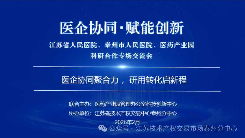 为搭建高端医疗资源与园区企业的精准对接桥梁,加速临床研究与产业创新深度融合,2月3日下午,江苏省人民医院、泰州市人民医院专家团队莅临园区,与园区相关代表企业负责人及科研骨干以科创集市为平台,开展临床研究及科研合作专场交流。活动由医药产业园管理办公室科技创新中心牵头主办,江苏省技术产权交易中心泰州分中心协办。